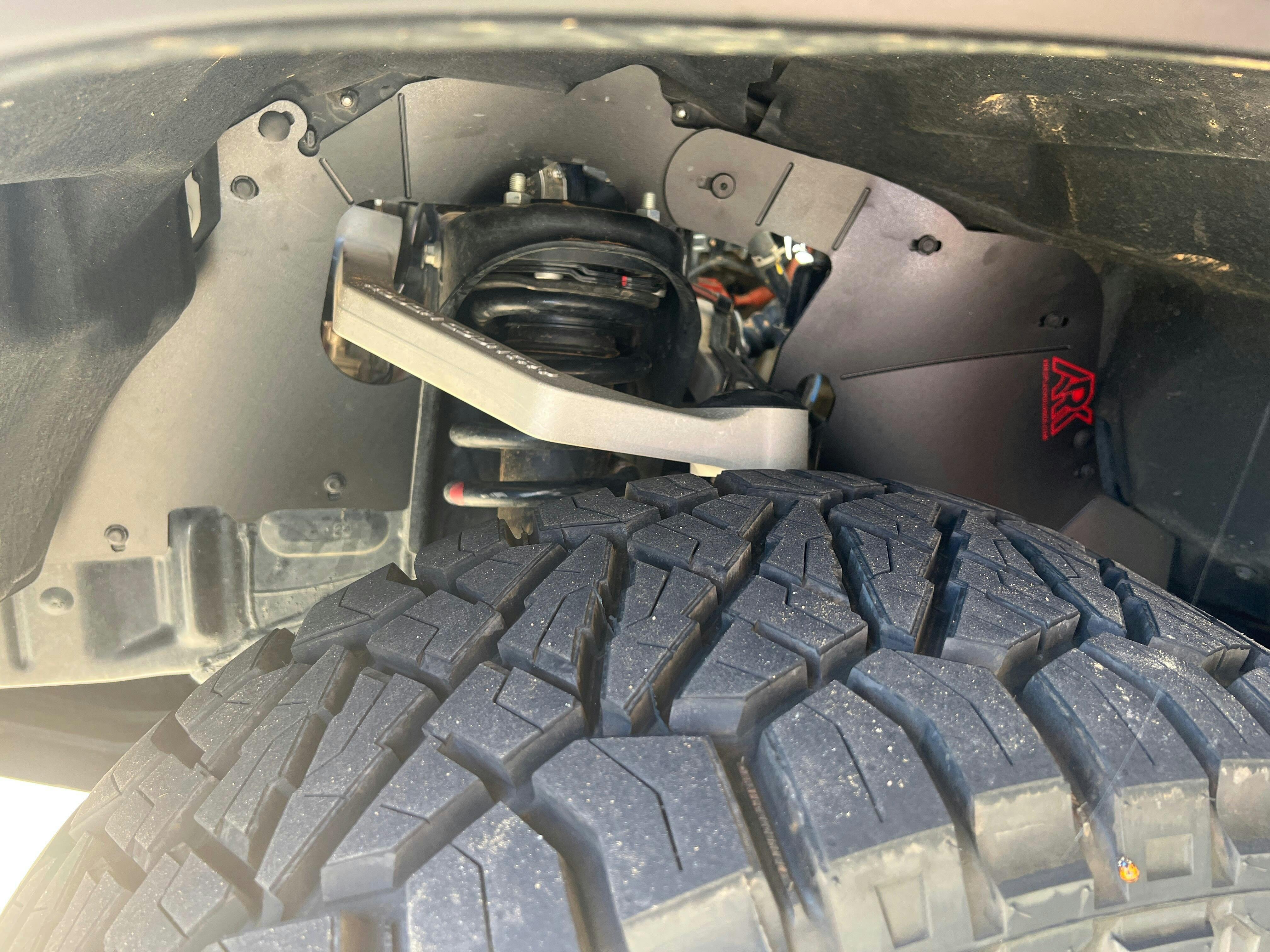 Our custom-designed splash guards enhance protection by reducing debris intrusion into the engine compartment while shielding exposed lines and gaps on the rear of your 4Runner. Unlike flimsy universal rubber pieces, these are precision-made exclusively for the 2025+ 6th Gen 4Runner to ensure durability and a perfect fit.